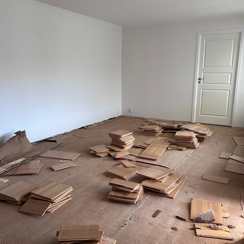 2st långa 2st kapade på bredden och ett antal mindre bitar skänkes bort.
