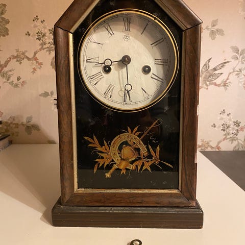 Klockan är mekanisk med original urverk och pendel, samt slagverk (slår timmen). Den levereras med original glaskupa, vilket är ett stort plus och blir allt mer ovanligt.