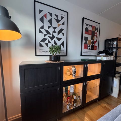 BESTÅ TV-möbel med vitrinskåp.