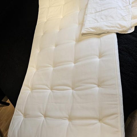 105 x 200 cm IKEA Skotterud resårbotten med Tussöy bäddmadrass. Sängen är i obetydligt använd, har stått i gästrum.