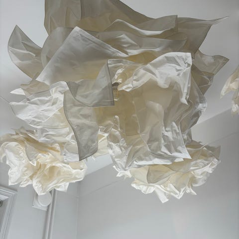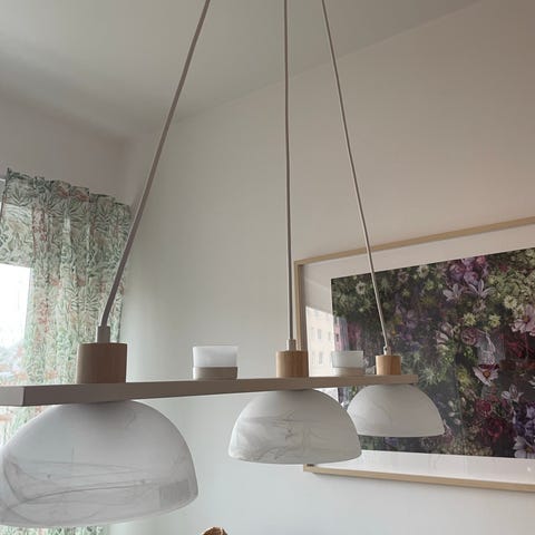 Mycket trevlig taklampa med två uppsättningar av lampskärmar.