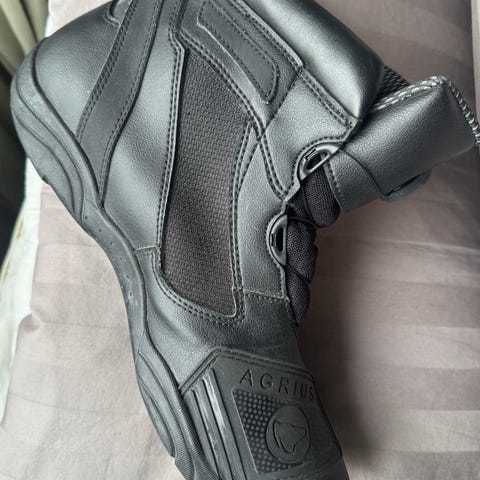 Motorcykel jacka i skinn storlek XXL i gott skick, tre fickor med blixtlås. Blixtlås på ärmarna. Färg:svart med ljus grå ränder på axlarna och ärmarna.