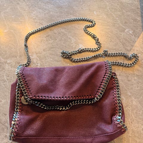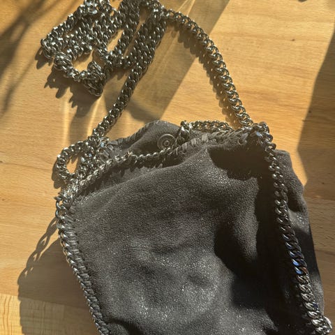 Skimrande marinblå handväska med silver kedjor och har ett större och ett mindre fack inne. Endast en gång använd.