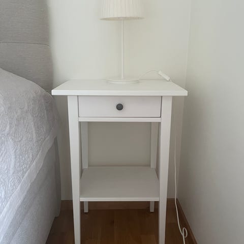 Snyggt sängbord med utdragbar låda samt en hylla. Använt och inte i nyskick...