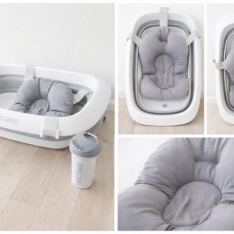 Twistshake badbalja med ställ i grått. Inkluderar flera tillbehör, se bilder.