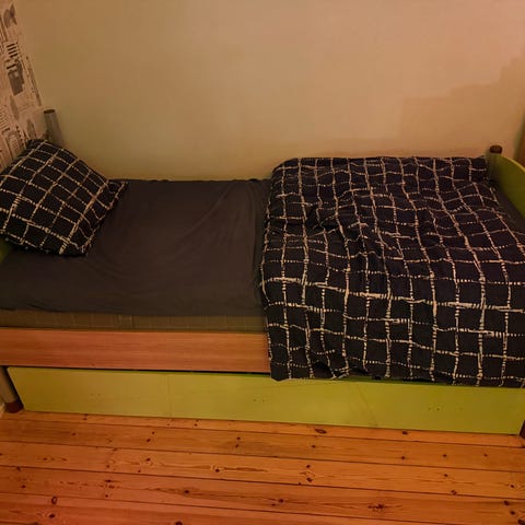 Säng 160cm + gavel (utan extra madrass): 1500:-