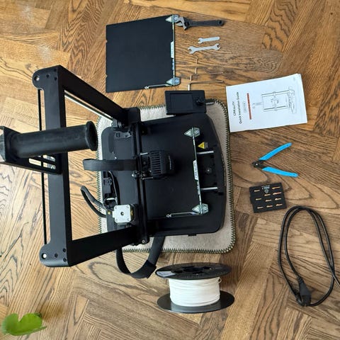 Anet A8 3D-skrivare i svart färg. Utrustad med en metallram och uppvärmd byggplatta. Används för att skapa tredimensionella objekt genom lager-på-lager utskriftsteknik.
