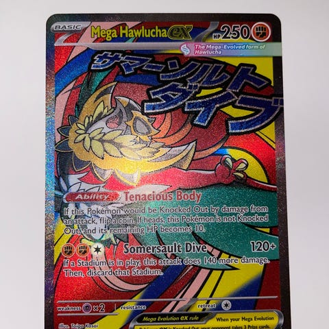 Urshifu VMAX Pokémonkort med holografisk design. Kortet visar karaktären Urshifu i dess VMAX-form och innehåller information om dess attacker och egenskaper inom spelet.
