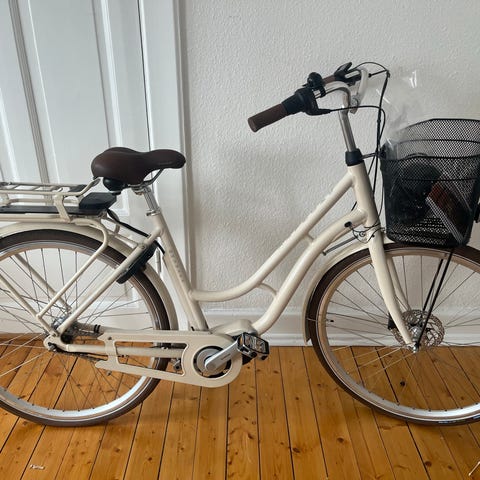Cykeln är i fullt fungerande skick och rullar fint. Normalt bruksslitage förekommer, såsom kosmetiska märken på ram, fälgar och lås (se bilder), men inget som påverkar funktion eller säkerhet.