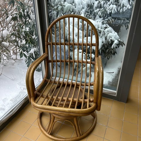 Fåtölj från IKEA:s tillfälliga kollektion "VIKTIGT", designad av den svenska formgivaren Ingegerd Råman. Kollektionen lanserades 2016. Fåtöljen har en stomme i svart metall med sits och ryggstöd i svart rotting.