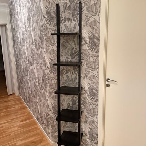 I svart metall och ljust trä. Finns inte längre i butikens sortiment. I fint skick!