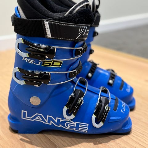 Lange skidpjäxor i blå färg med orange detaljer med flera justerbara spännen för anpassad passform. Slitna på utsidan men utan anmärkningar på innerpjäxan. Hämtas i Spånga Bromsten. Stl 23,5.