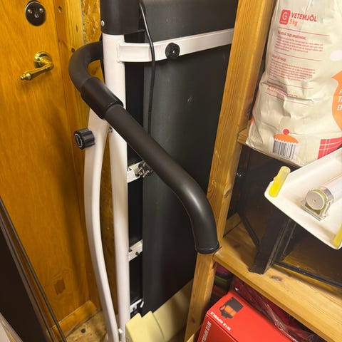 Använd en gång. Ihopfällbart. Fälls ut till dubbel storlek. 1-7 i hastighet. Så lätt löpning går utmärkt. Den är rak mot golvet, så ingen uppförsbacke.