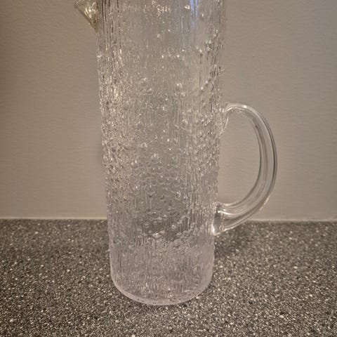 Iittala kanna i klart glas med handtag. Är ur gran serien