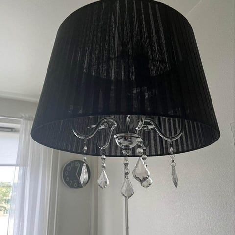 Kristallerna är i plast men i bra skick. Köpt begagnad, men inte använt. Behöver nya glödlampor!