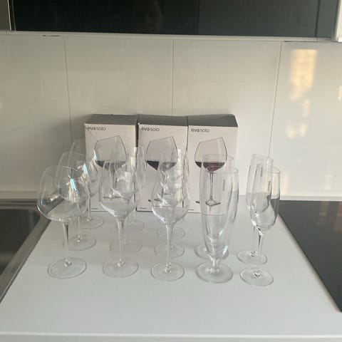 Eva Solo vinglas i klart glas. Glasen har en elegant form med lång fot och kupad skål.