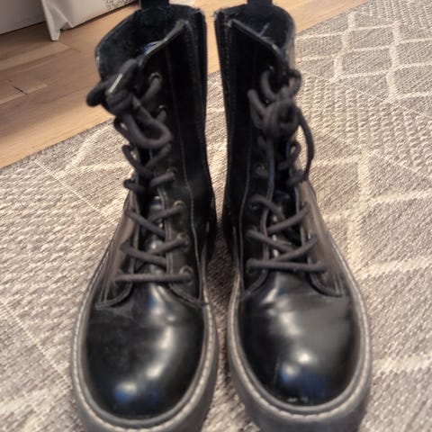 Ett par helt nya och oanvända kängor i svart färg.
