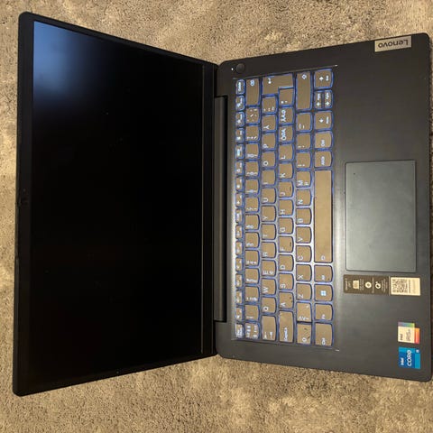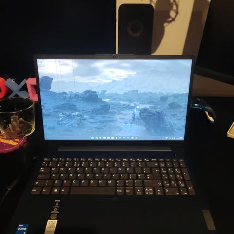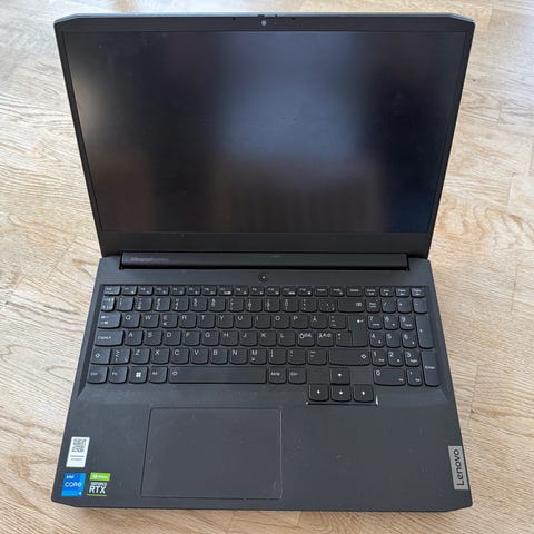 Lenovo bärbar dator i svart färg. En bärbar gaming dator med bakgrundsbelyst tangentbord och en pekplatta. Passar för allmän användning och arbete och gaming.