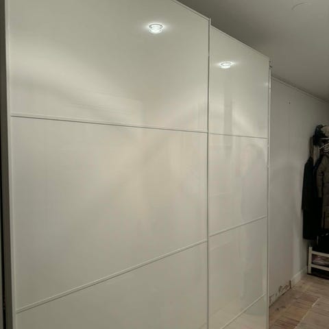 Fina skjutdörrar till IKEA Pax garderober. 3 st vara 2 vita och 1 med spegel. Fullt fungerande med skenor etc. Även kallat SKYTTA / FÄRVIK Skjutdörrskombination.