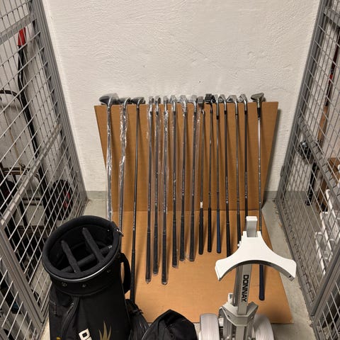 Fem sidofack, dubbla hållare för paraplyer, 6 delat klubbfack, kraftig bärsele.