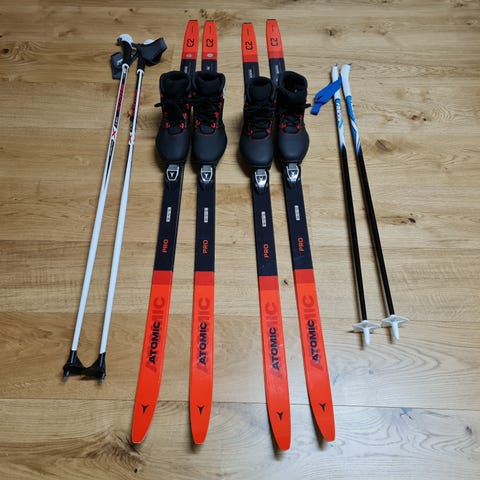 Inga skins så skidorna går bra att använda för både klassiskt och skate. Rottefella-bindning sitter på.
