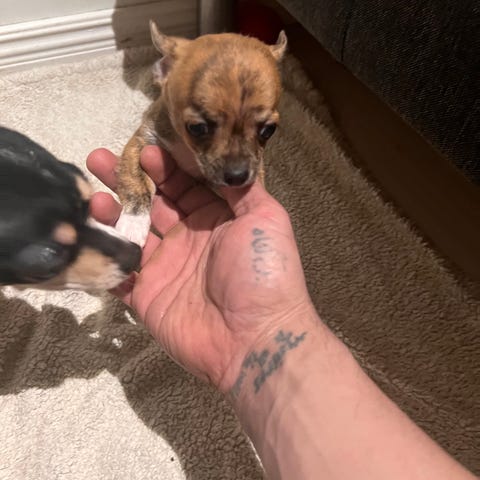 Dessa är blandrashundar med pomerainien och chihuahua i sig och väger ca 3-4 kg som fullvuxna.
