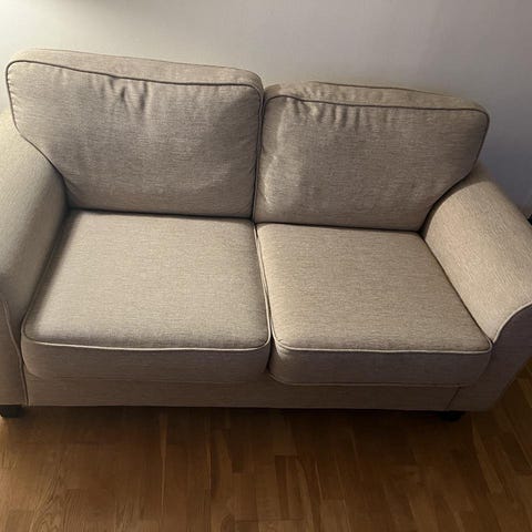 Jag säljer min sköna 3-sits soffa i en blågrå färg eftersom jag ska flytta stor lägenhet och den passar inte till den ny lägenhet.