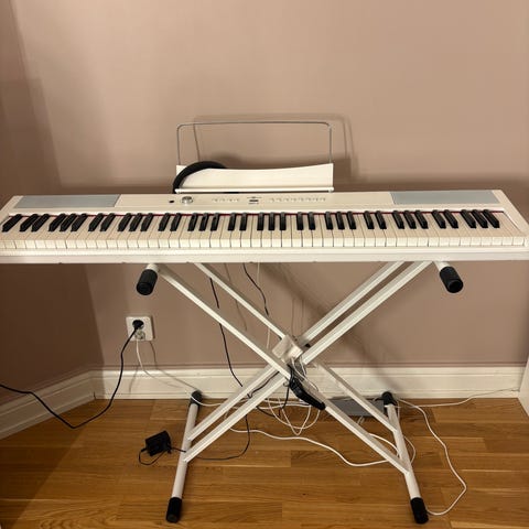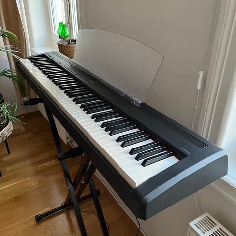 Yamaha elpiano med vägda tangenter, fungerar felfritt. Finns sustainpedal. Pianot har inga inbyggda högtalare. Stativ tillkommer ej.