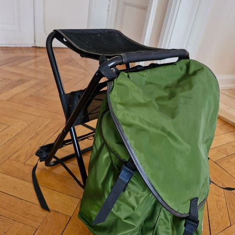 Vaude bärstol för barn i svart och grå färg. Utrustad med justerbara remmar och vadderad rygg för komfort. Bärstolen har flera fickor och är designad för att bära barn säkert under vandring eller promenader.