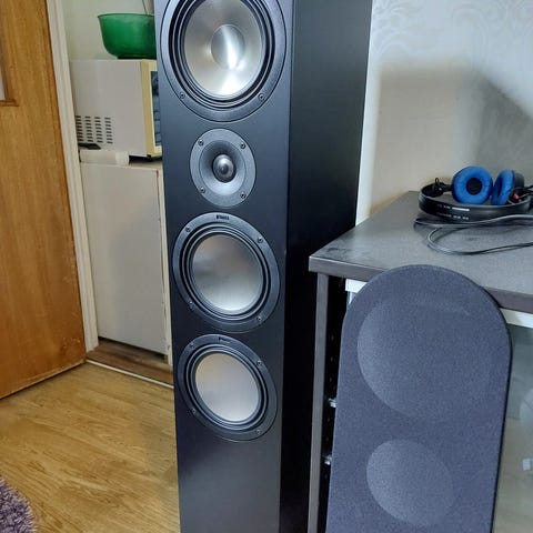 Säljer ett par Mirage FRX 9 golvhögtalare - rejäla och väbyggda högtalare som levererar stort, fylligt ljud med djup bas och klar diskant. Mirage är ett välrenommerat hifi-märke och FRX 9 är en av deras större modeller.