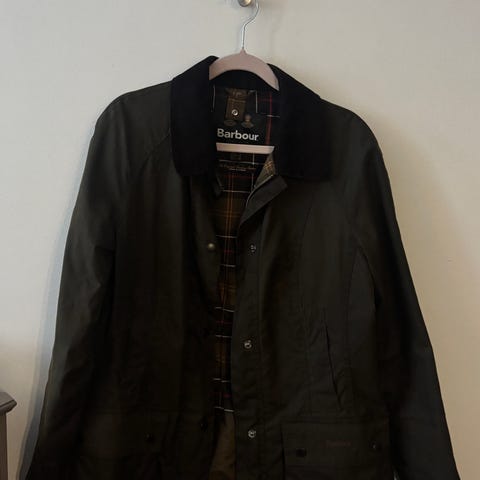 Barbour kappa i svart färg, tillverkad i bomullsmaterial. Damstorlek 36, passar även en 38. Kappan har ett bälte i midjan och en klassisk design med knappar framtill. Den är lämplig för vardagligt bruk och kan användas vid olika väderförhållanden.