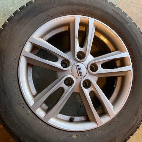 Fyra fälgar (helt Ok) med däck (varav två är helt slut)