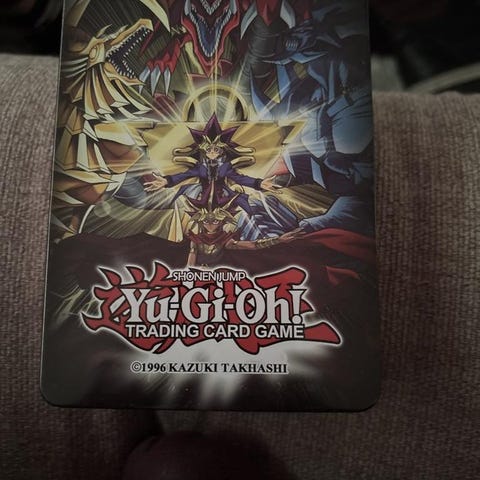 Yu-Gi-Oh! samling av spelkort med varierande motiv och färger. Kortens baksida är brun med en virvelmönstrad design. Kortleken innehåller både monster- och magikort och är avsedd för spel och samling. 72 kort.