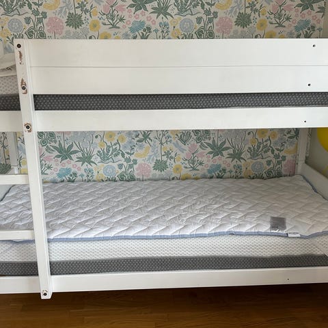 Sängen kommer med 2 madrasser, samt 2 nytvättade täcken, kuddar och överkast.