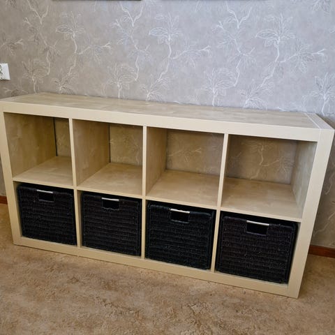 Har haft dom ihop så det blev en längre hylla. Går att sätta dom på varandra om man vill ha en ståendes hylla.