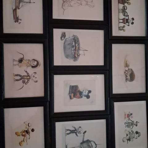 Jag säljer 4 st tavlor med Lasse Åbergs motiv. En av ramarna har inget glas.