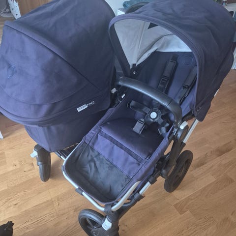Nu har det blivit dags att sälja vår fina syskonvagn. En bugaboo Donkey 3, duo i färgen Grey melange på tyget och Svart chassi.