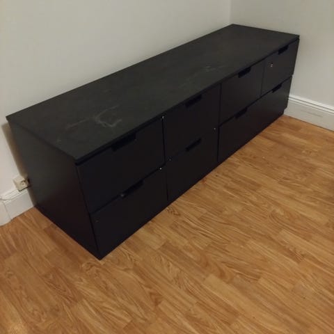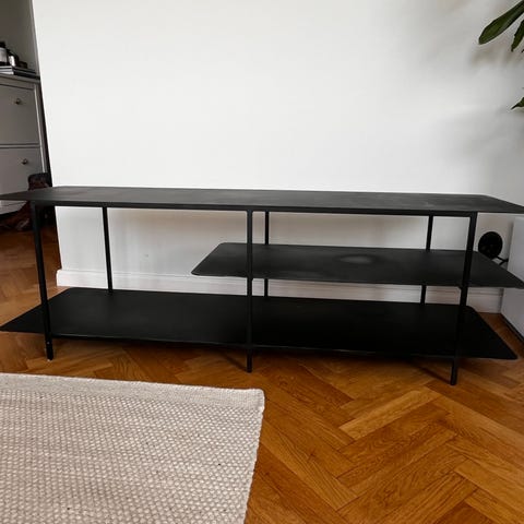 Fin, svart TV bänk skänks för omgående upphämtning. Funkat kanon för oss, men gör om rummen så nu måste den bort.