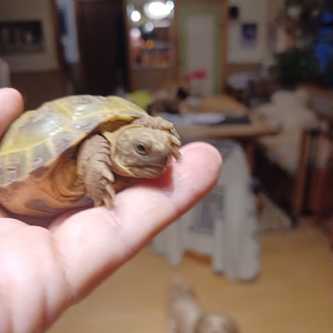 Min landsköldpadda söker ett tryggt och lugnt hem. Det är oerhört viktigt för mig att han hamnar hos en familj som är trygg och gärna lugn.