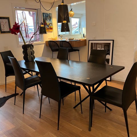 6 svarta stolar i konstläder