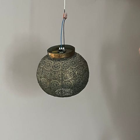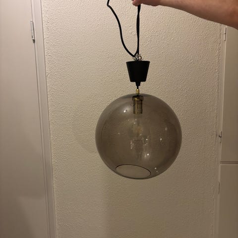 Rund svart handgjord tacklampa, diameter 46cm. Sladd och ledlampa ingår. Rökfritt hem. Avhämtas i Vårberg.