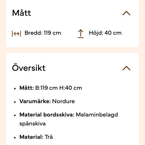 Stora bordet: 79,5cm i diameter, höjd upp till skivkant 35cm.