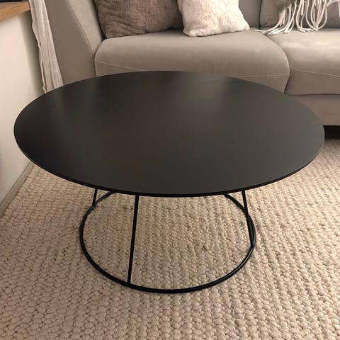 Lilla bordet: 60cm i diameter, höjd upp till skivkant 47cm.