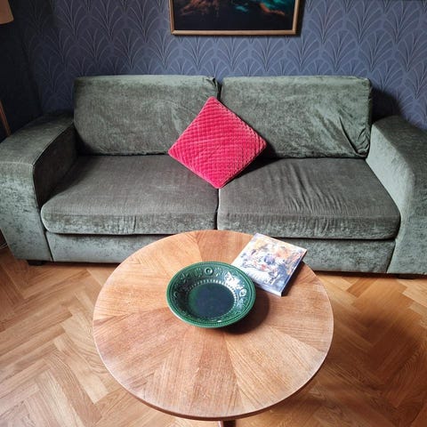 Mio soffa i mörkgrått tyg. Soffan har en modern design med raka armstöd och metallben. Passar för vardagsrum och erbjuder sittkomfort för flera personer. Har varit i vårt extrarum och därför knappt använt.