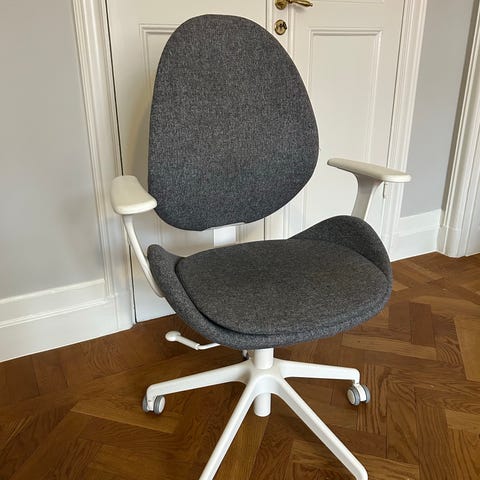 IKEA ergonomisk kontorsstol i beige/vit med armstöd och hjul. Stolen är som ny, inga fläckar eller slitage . Nätt och fin stol