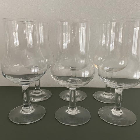 Det finns 7 glas. Vid köp av samtliga säljes de för 1.200 kr