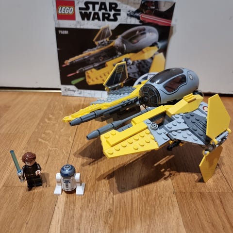 LEGO Star Wars komplett byggsats med flera delar inklusive figurer och instruktioner.