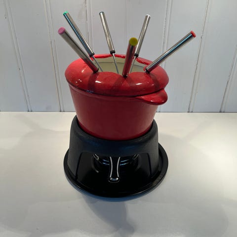Enjoy a classic cheese fondue experience with this authentic ceramic Gruyere fondue set. Designed for even heating and smooth melting, it’s perfect for cozy gatherings and intimate dinners. Never used, brand new condition.