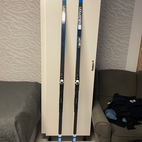Fischerskidor med Salomons snsbindningar. Rcs-skidorna är 207 cm långa. Sns 202 cm långa. Passar åkare runt 70 kg.
