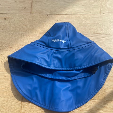 Didriksons regnhatt / barnhatt i storlek 56. Hatten är rosa och tillverkad i polyester och polyuretan.